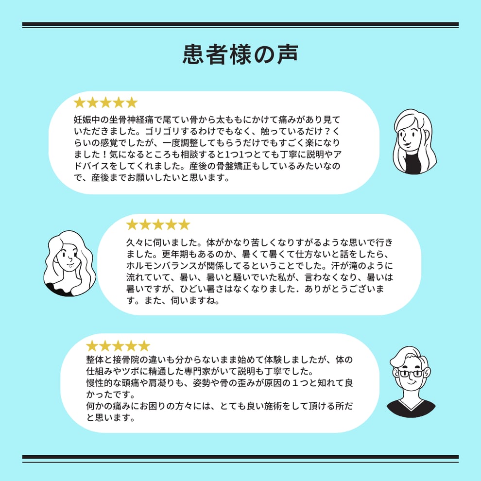 ・優しいタッチで調整していくので胎児もママも安心して治療を受けられます